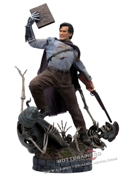 Alta circa 52 cm, questa creazione cattura tutta l’energia eroica e ironica del leggendario protagonista, con una posa dinamica che lo vede dominare la scena brandendo il Necronomicon.