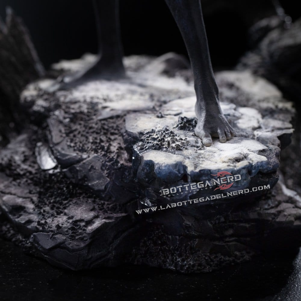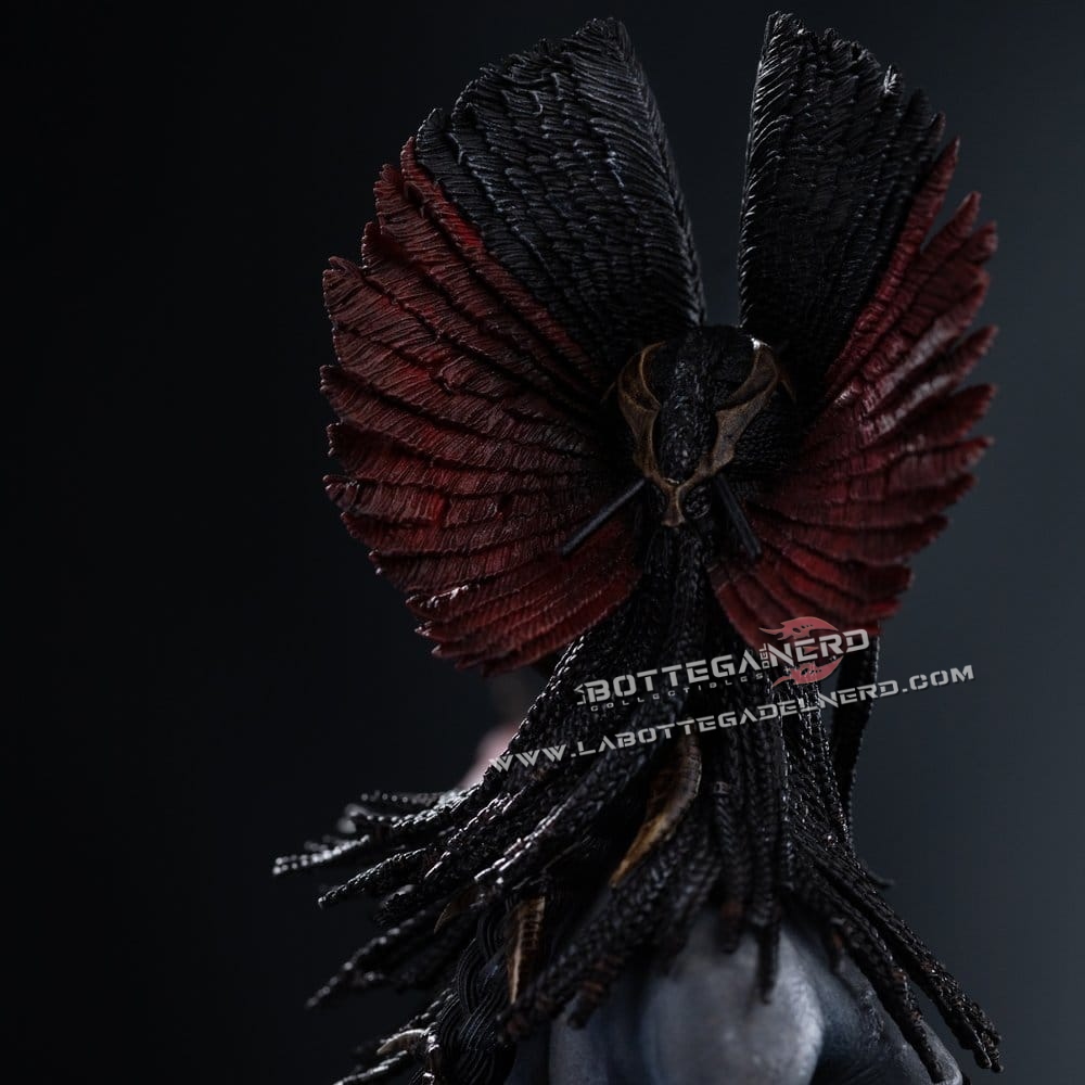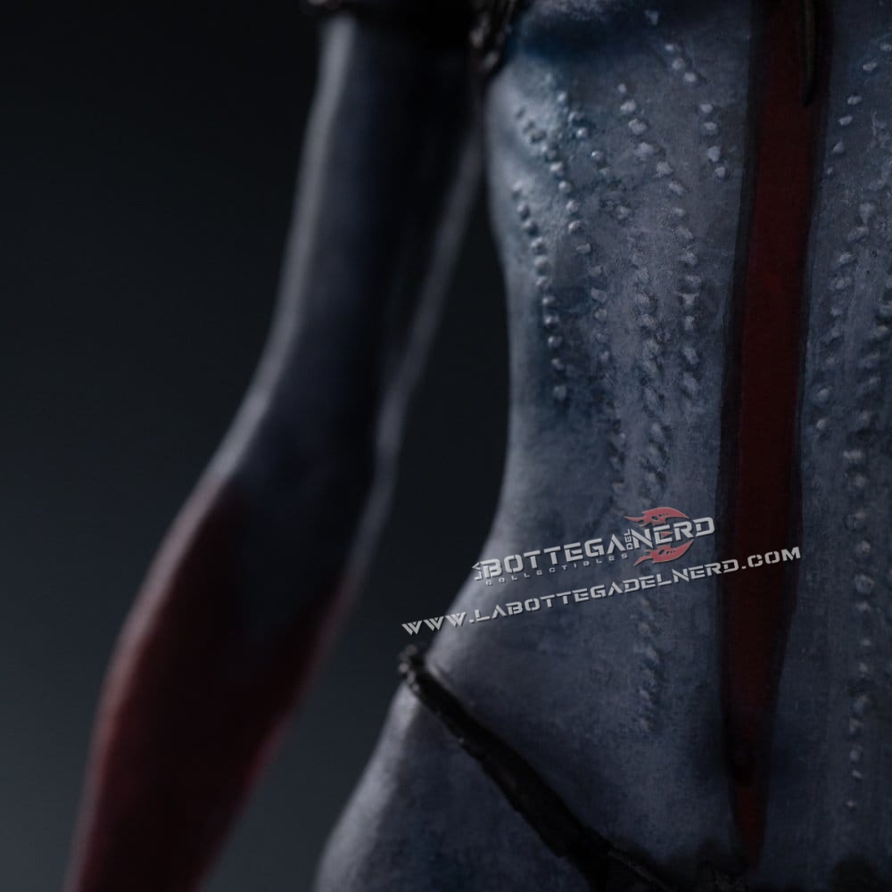 La statua è realizzata principalmente in polystone, con l’aggiunta di parti in resina, PVC e metallo per aumentare solidità e definizione. La pittura eseguita a mano enfatizza texture, volumi e contrasti cromatici, donando profondità e realismo all’insieme. Con un’altezza complessiva di 38 cm, questo pezzo si distingue come elemento di forte impatto per collezioni dedicate al cinema e alla fantascienza di alto livello.