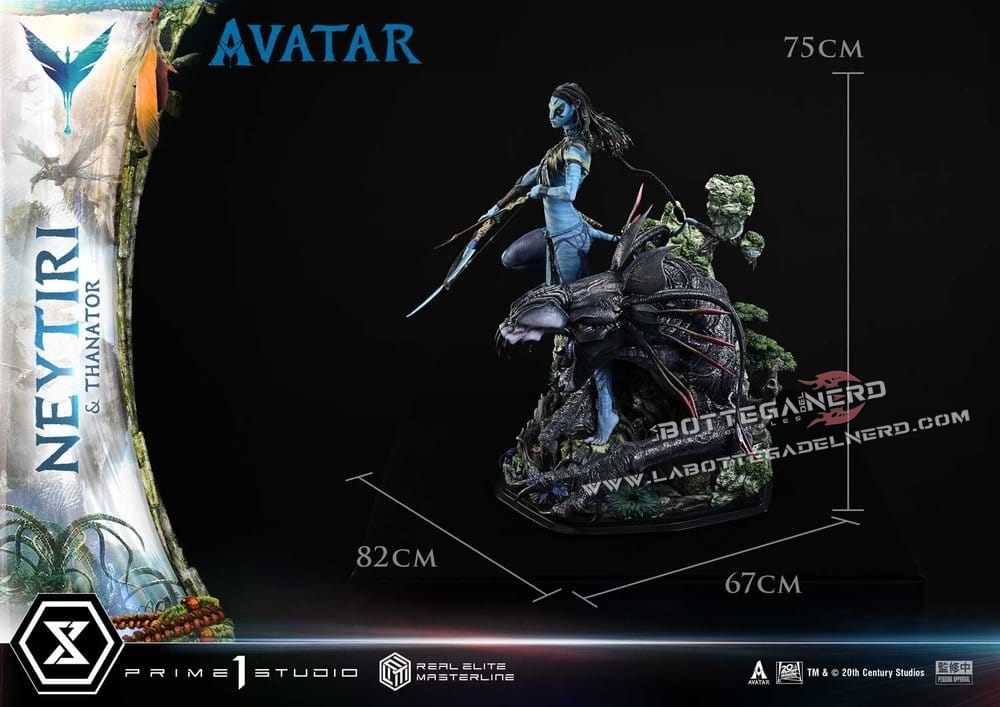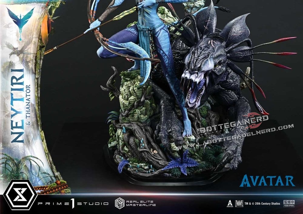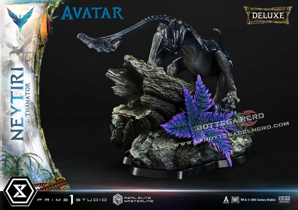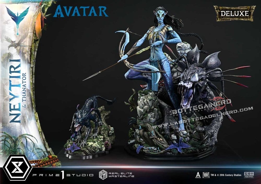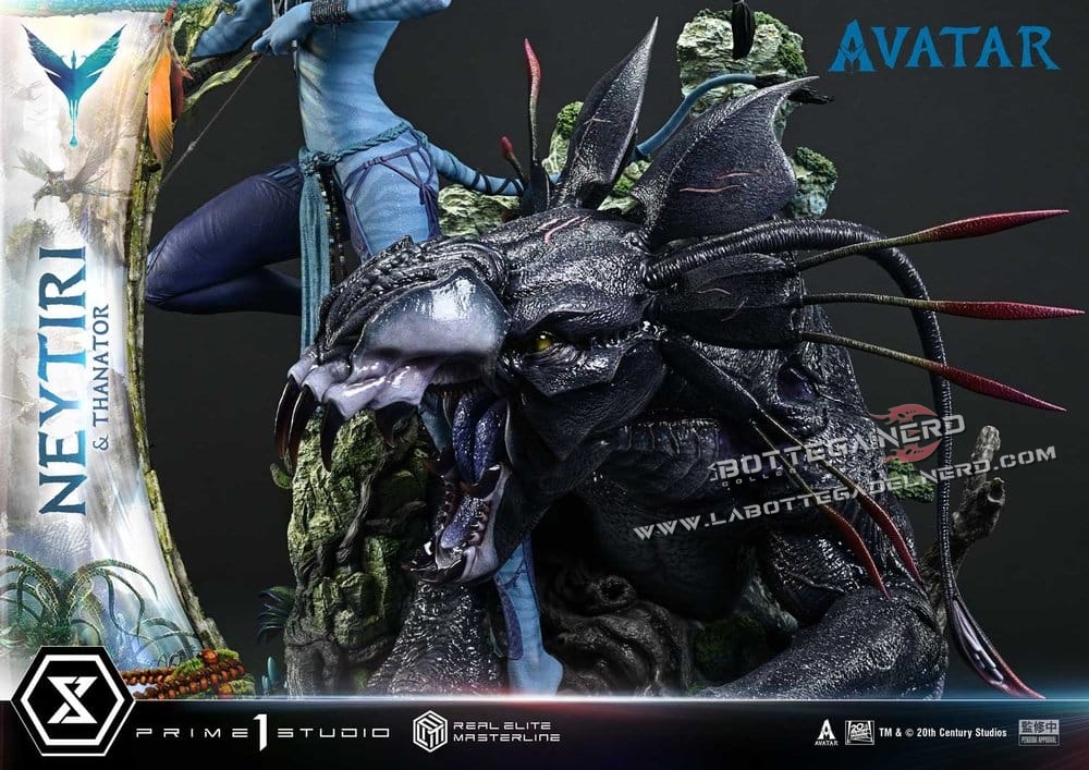 Prime 1 Studio firma una monumentale statua in scala 1/4 dedicata a Neytiri e al feroce Thanator, ispirata al film Avatar e proposta nella prestigiosa Real Elite Masterline Deluxe Version. L’opera raggiunge un’altezza complessiva di 75 cm e ricrea una delle scene più intense della battaglia finale su Pandora.