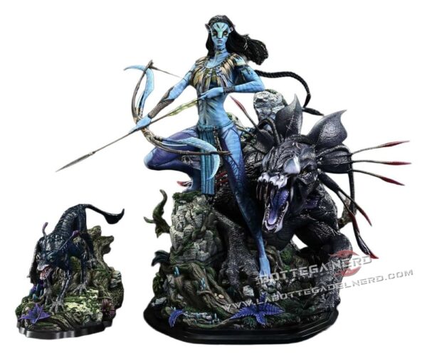 La Deluxe Version include anche il Viperwolf, raffigurato con un’espressione aggressiva e una posa dinamica che arricchisce la scena e aumenta l’impatto visivo complessivo. La base scenica richiama la vegetazione di Pandora e unisce armoniosamente tutti gli elementi, trasformando la statua in una vera opera d’arte da esposizione.