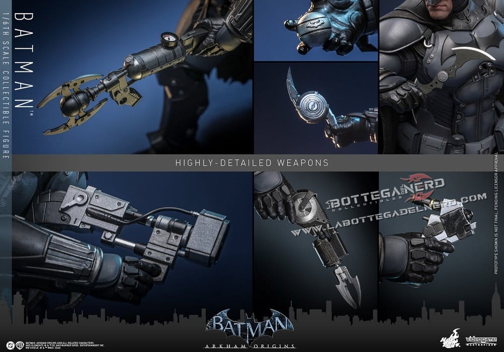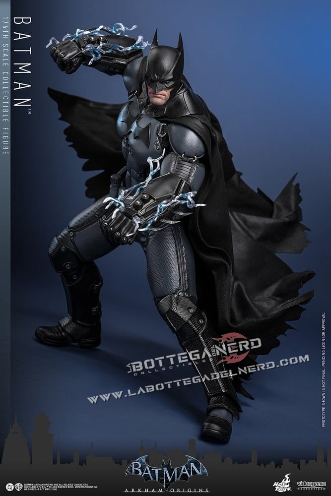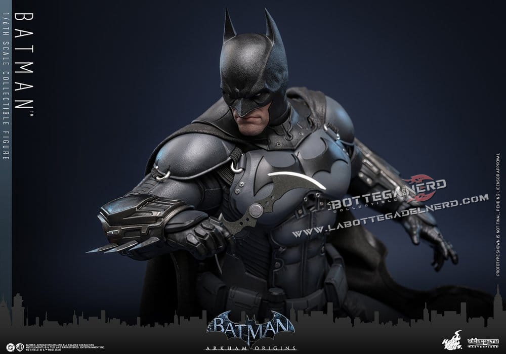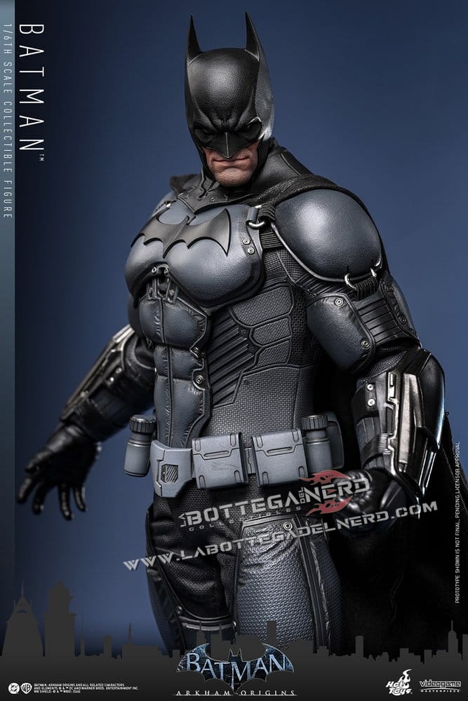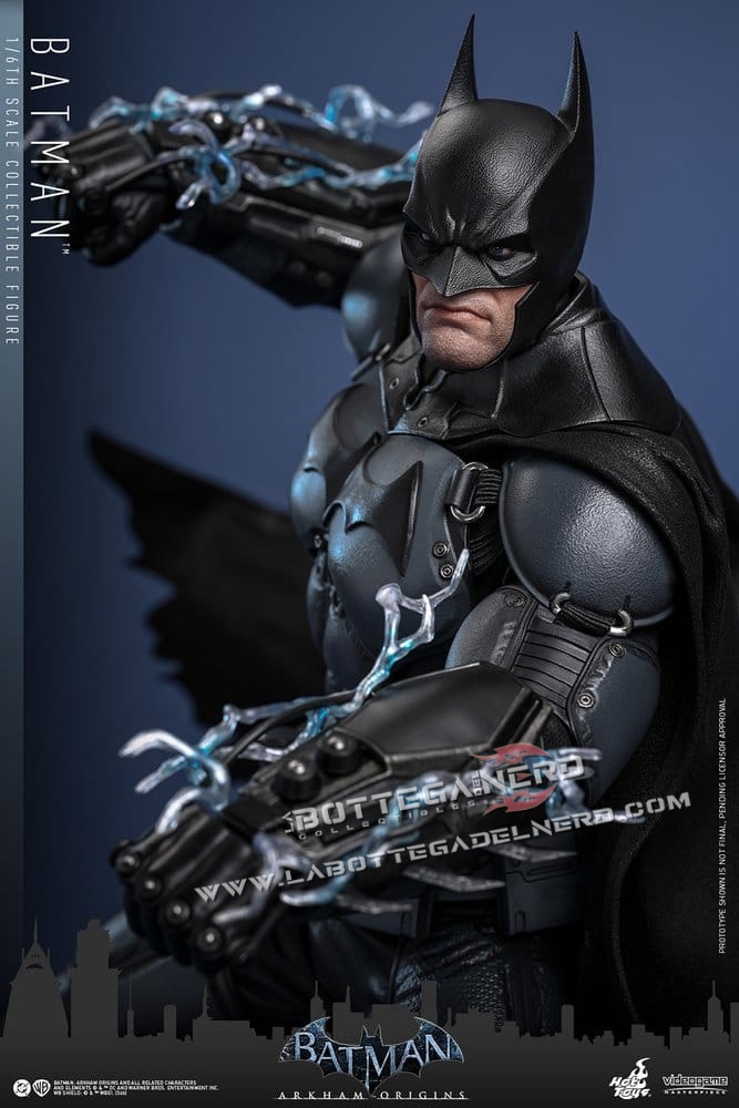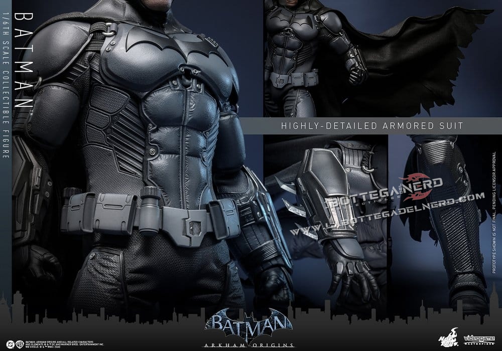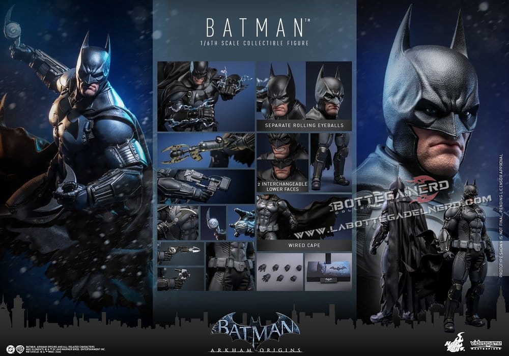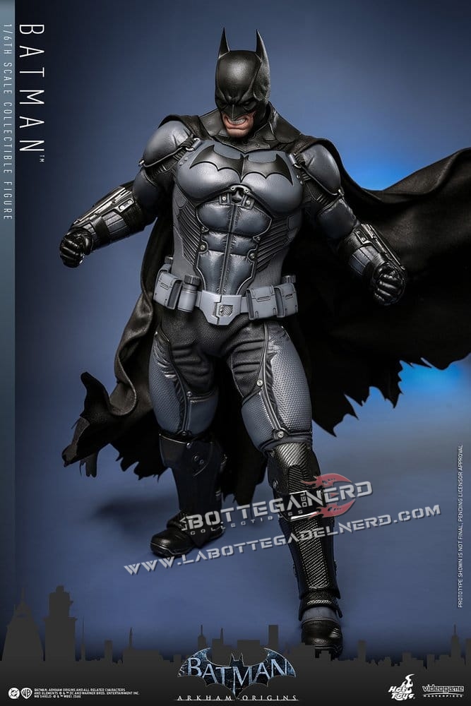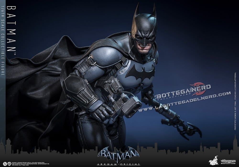 Hot Toys realizza una action figure di altissimo livello dedicata a Batman, ispirata al videogioco Arkham Origins. Questa versione in scala 1:6, alta circa 33 cm, interpreta un Cavaliere Oscuro più giovane e brutale, nel pieno della sua evoluzione come protettore di Gotham.