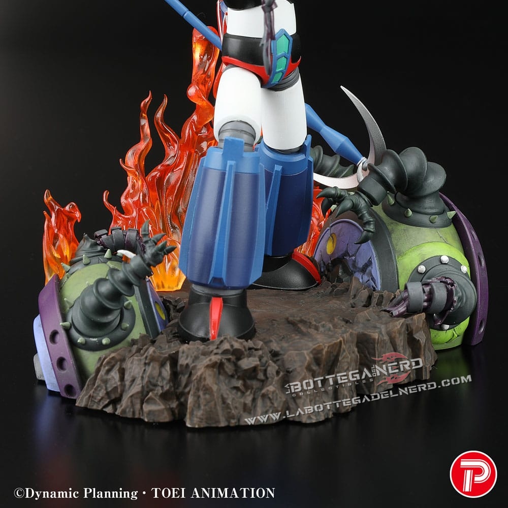 Plex celebra uno dei momenti più epici di Goldrake con questa statua Grendizer Scene Selection 01 alta circa 15 cm, ispirata a una scena carica di azione e potenza.