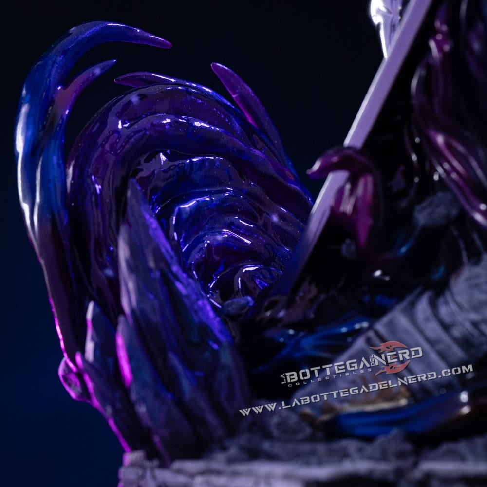 La statua è realizzata principalmente in polystone con parti in resina, PVC e metallo, ed è rifinita con pittura manuale di alta qualità che esalta riflessi, volumi e profondità. Con un’altezza complessiva di circa 34 cm, questo diorama rappresenta un elemento centrale per qualsiasi collezione dedicata a Marvel e ai suoi personaggi cosmici più leggendari.