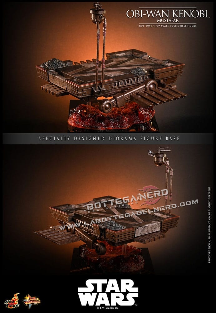 La figure include nove mani intercambiabili e due versioni della spada laser blu, con lama LED alimentata via USB per un effetto luminoso mozzafiato. La base diorama raffigura una piattaforma sospesa sopra colate di lava, ricreando perfettamente l’atmosfera incandescente del pianeta. Un capolavoro che racchiude il coraggio, la saggezza e la sofferenza del più nobile tra i Jedi.
