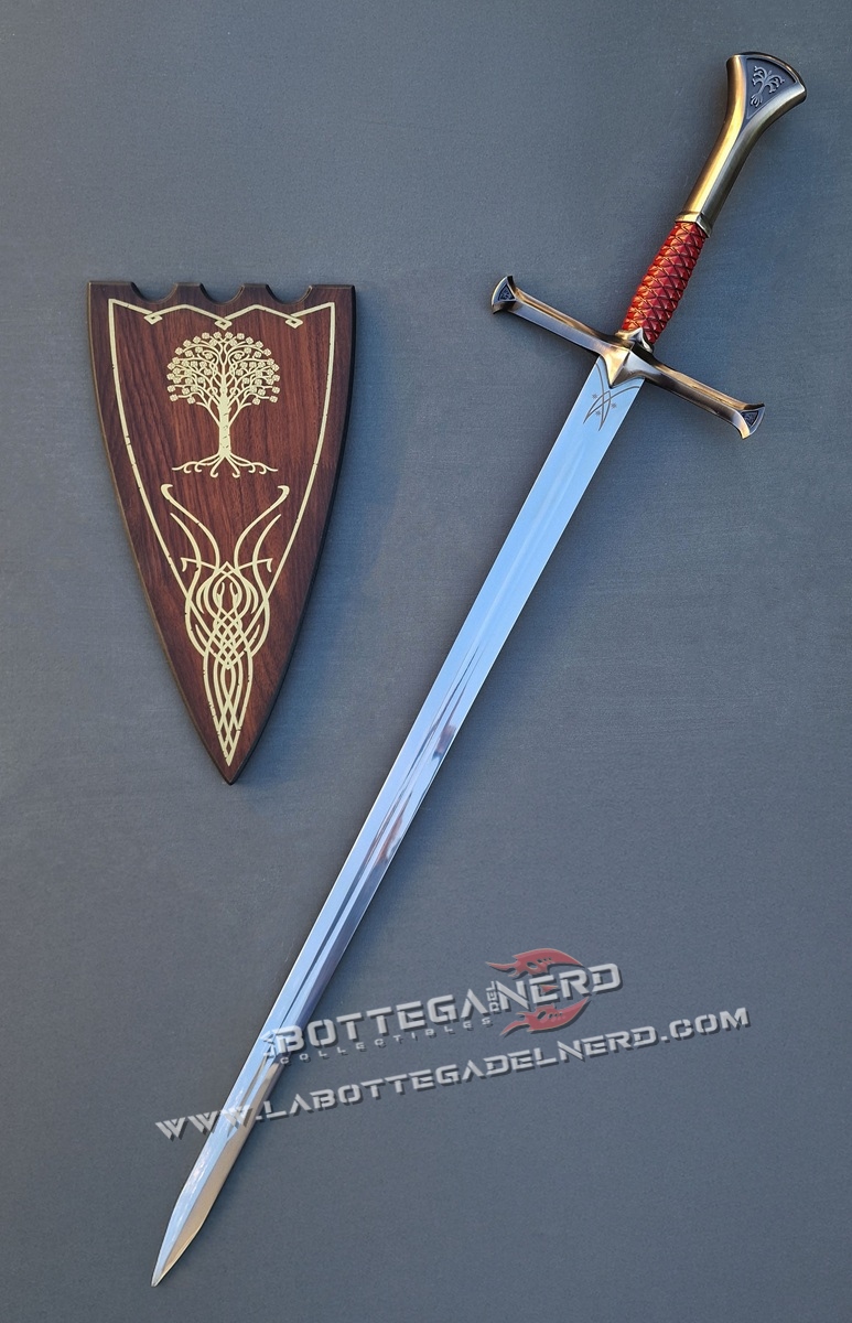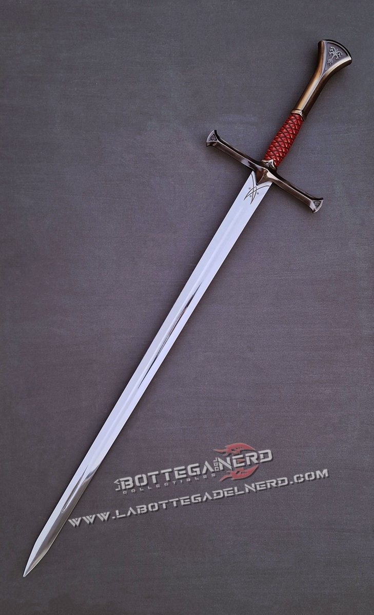 Questa spada ornamentale si ispira alla celebre arma di Isildur, figura iconica de Il Signore degli Anelli, simbolo di coraggio e della lotta contro le forze oscure nella Terra di Mezzo. La riproduzione è pensata per appassionati di fantasy, collezionisti e amanti dell’arredamento tematico.