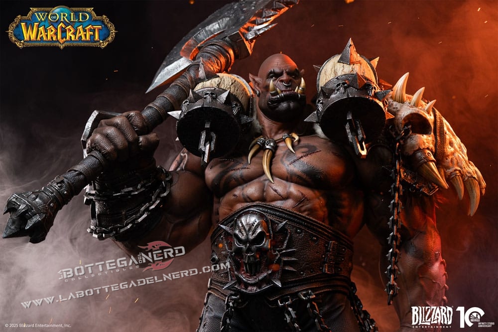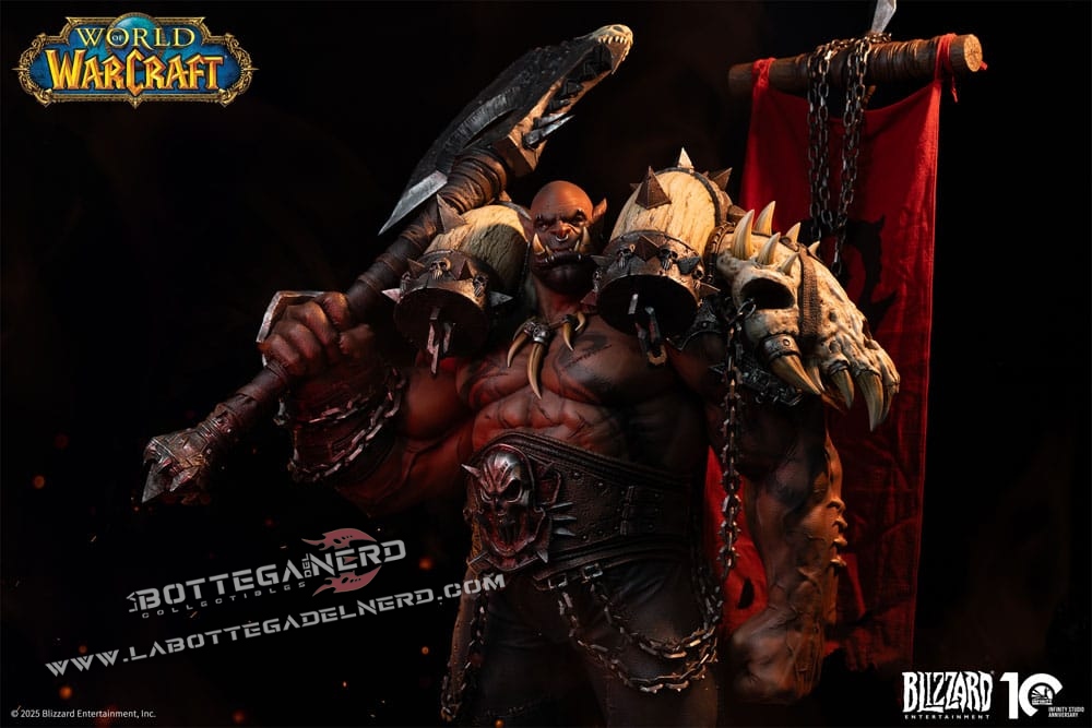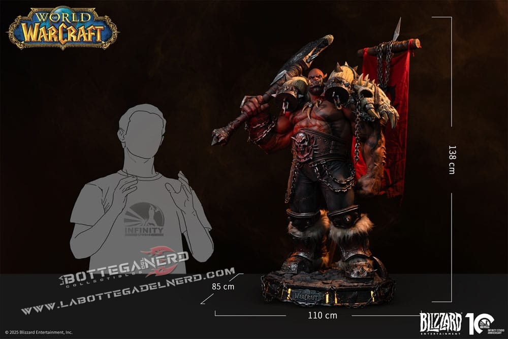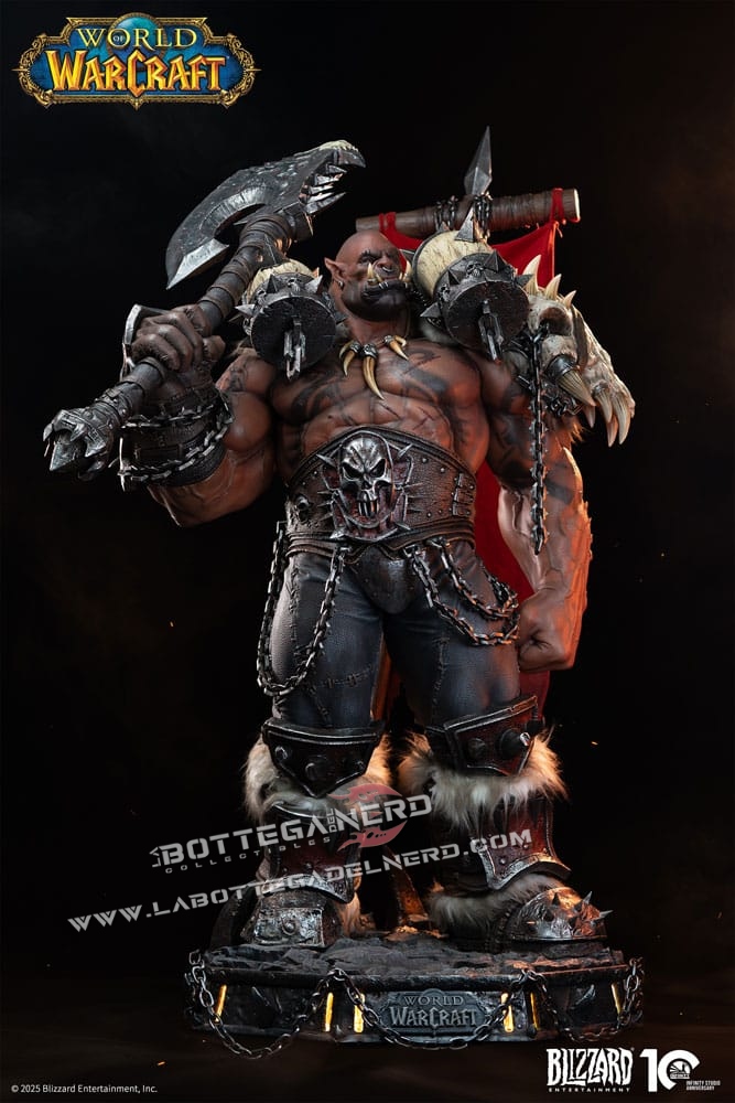 Infinity Studio dà vita a Garrosh Hellscream con una statua in scala 1/3 alta 138 cm, una presenza imponente ispirata all’universo di World of Warcraft. La posa dominante richiama perfettamente il suo ruolo di Warchief, trasmettendo forza e autorità in ogni dettaglio.