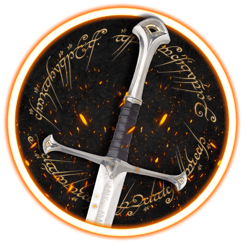 Anduril è molto più di una semplice lama, è il simbolo della rinascita di un re e della speranza della Terra di Mezzo. Forgiata dai frammenti di Narsil, questa iconica spada accompagna Aragorn nel suo destino, diventando una delle reliquie più riconoscibili dell’intera saga de Il Signore degli Anelli.