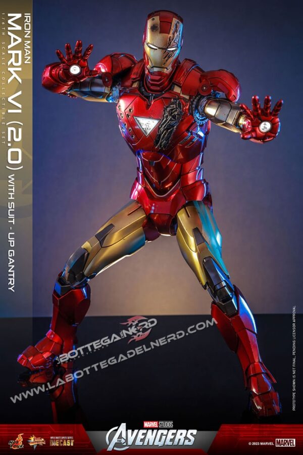 Con l’unione di questi due modelli si potranno ricreare spettacolari scene cosi come apparse nella prima pellicola degli “Avengers“, con Tony Stark che scende la scalinata mentre l’armatura viene composta dalle braccia meccaniche del dispositivo. Questa nuova versione (la 2.0) della Mark VI e il Suit-Up Gantry saranno venduti separatamente oppure in bundle assieme.