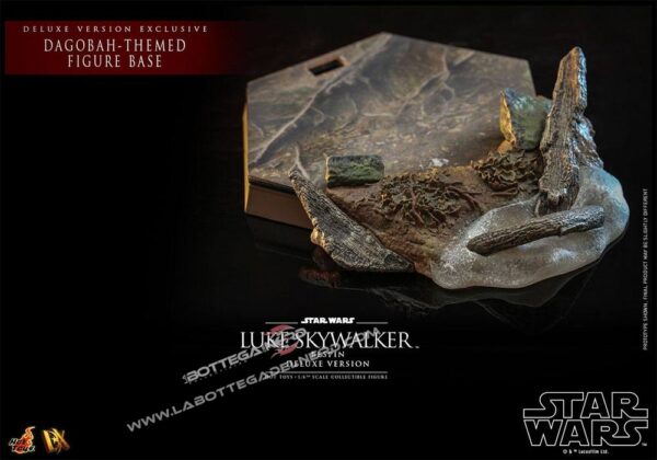 Questa versione Deluxe comprende degli accessori aggiuntivi come una basetta diorama che riproduce il terreno accidentato di Dagobah.
